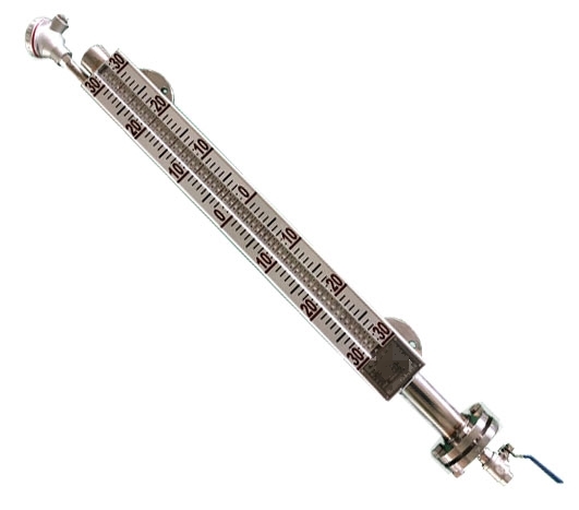 3、磁翻板液位計安裝必須垂直,磁翻板液位計與容器引管間應裝有球閥,便于檢修和清洗;